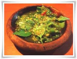3.tambahkan cabai dan tomat,haluskan kasar lalu tambahkan dau kemangi,haluskan kasar lagi.